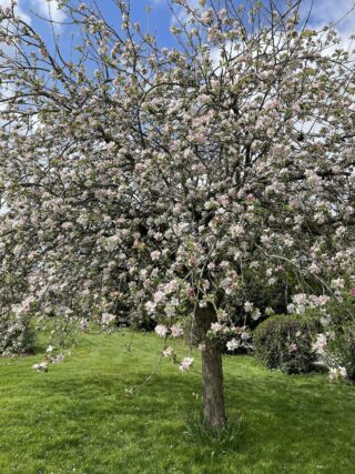 Notre jardin est aussi entouré d’arbres fruitiers principalement des pommiers avec des variétés anciennes mais aussi des cerisiers, pêchers et pruniers. Les pommes sont utilisées pour la fabrication du jus de pomme de l’Auberge.